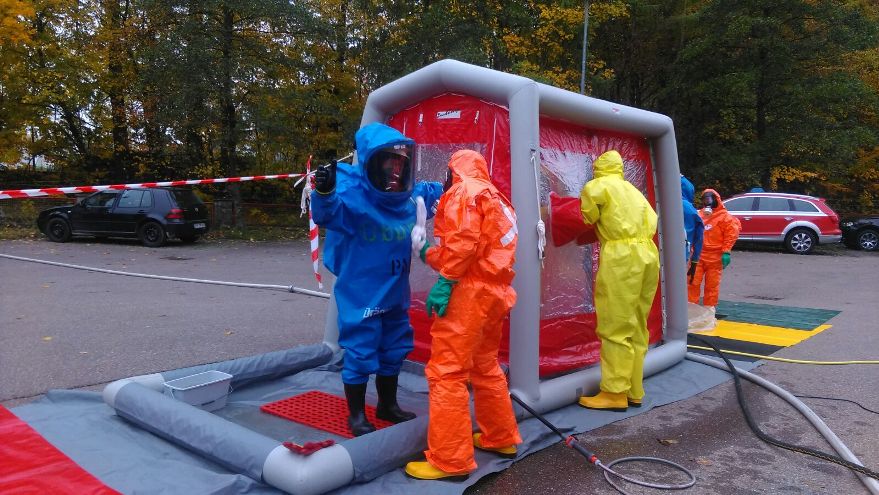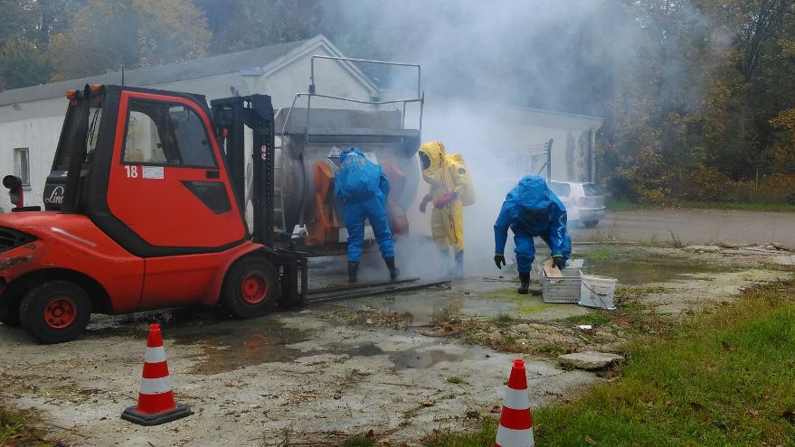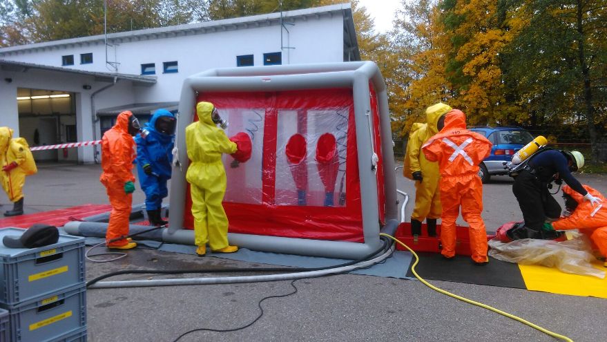 Großangelegte Gefahrstoffübungen mit unserem Dekon-P-Anhänger.