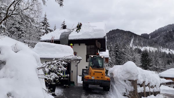 - das Dach eines Miesbacher Seniorenheimes muss von der Schneelast befreit werden