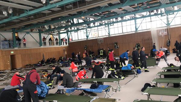- jetzt ab ins Bett; das Quartier ist heute eine Turnhalle