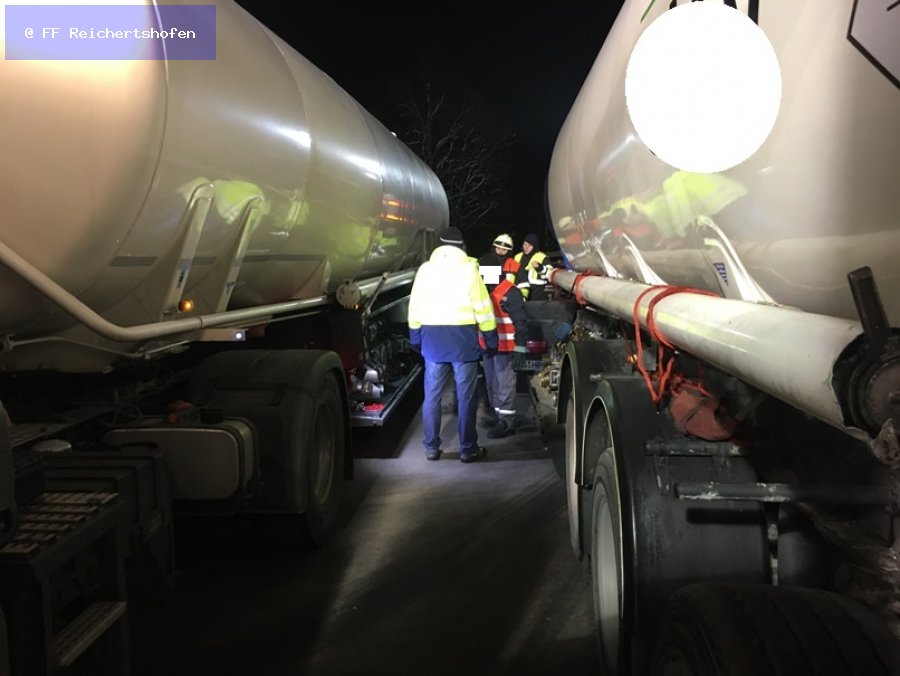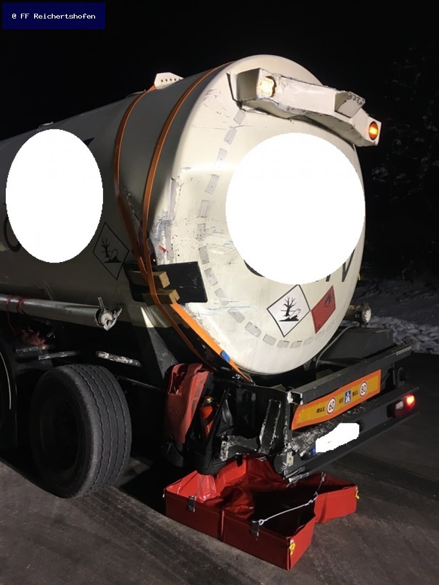 Verkehrsunfall mit Tanklastzug, Diesel läuft aus wurde gemeldet.