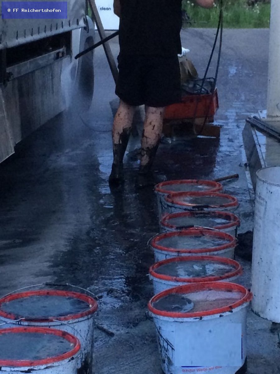 Durch einen Unfall liefen auf der Ladefläche eines Lieferwagens mehrere Behältnisse aus. Da die Reinigung sehr schnell stattfinden musste, bevor etwas angetrocknet war, unterstützten wir sofort mit einigen Mann um die Fläche zu reinigen. Der Betreiber der Anlage zog auch die Polizei hinzu, da ein Schaden am Clean Park nicht ausgeschlossen werden kann.