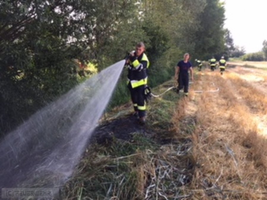 In der Waldinger Flur geriet an mehreren Stellen ein abgeerntetes Getreidefeld in Brand. Die betroffenen Flächen wurden abgelöscht und der umliegende Bereich nach Glutnestern abgesucht. Die Brandstellen konnten rasch gelöscht werden.