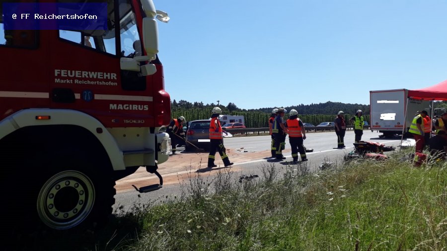 Verkehrsunfall mit eingeklemmter Person war die Meldung zu der wir heute ausrücken mussten. Im Stau eines anderen Unfalles in Richtung München hat es einen schweren Auffahrunfall gegeben.