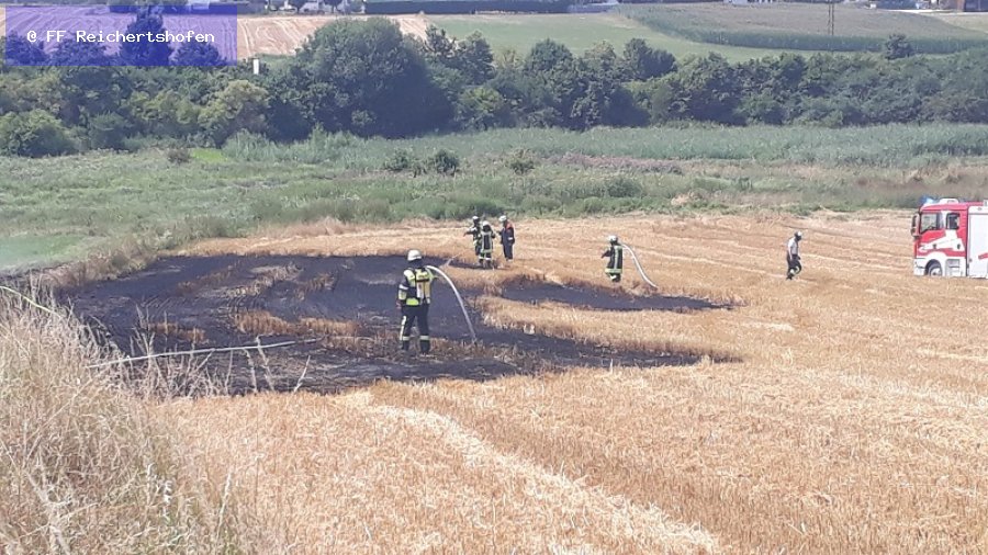 Brand eines Mähdreschers und Stoppelfeld in Winden am Aign.