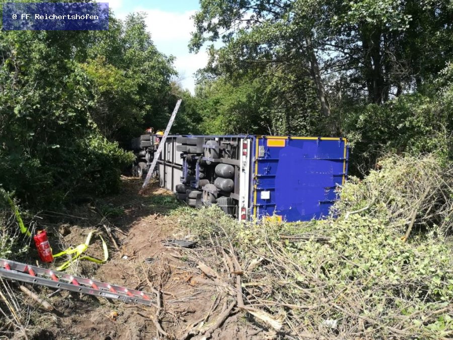 Zu einem Verkehrsunfall mit eingeklemmter Person wurden wir heute mit Langenbruck und Winden am Aign alarmiert. Ein LKW kam von der Fahrbahn ab und und blieb auf der Seite liegen. Die Fahrerin konnte sich nicht selbständig befreien.