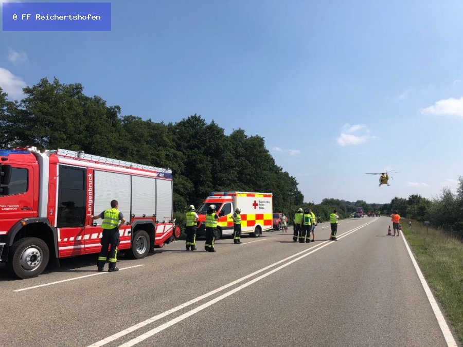 Die Feuerwehr Langenbruck kümmerte sich um die Betreuung und Rettung der Fahrerin aus dem LKW. Mithilfe von Steckleitern dem Rettungsdienst und einigen Feuerwehrmännern konnte die Fahrerin dann leicht verletzt aus dem Fahrerhaus befreit werden.