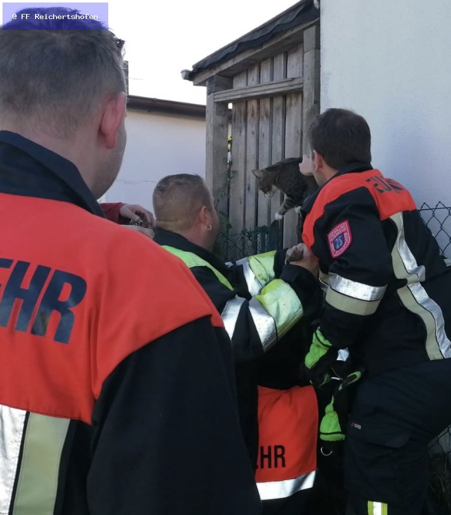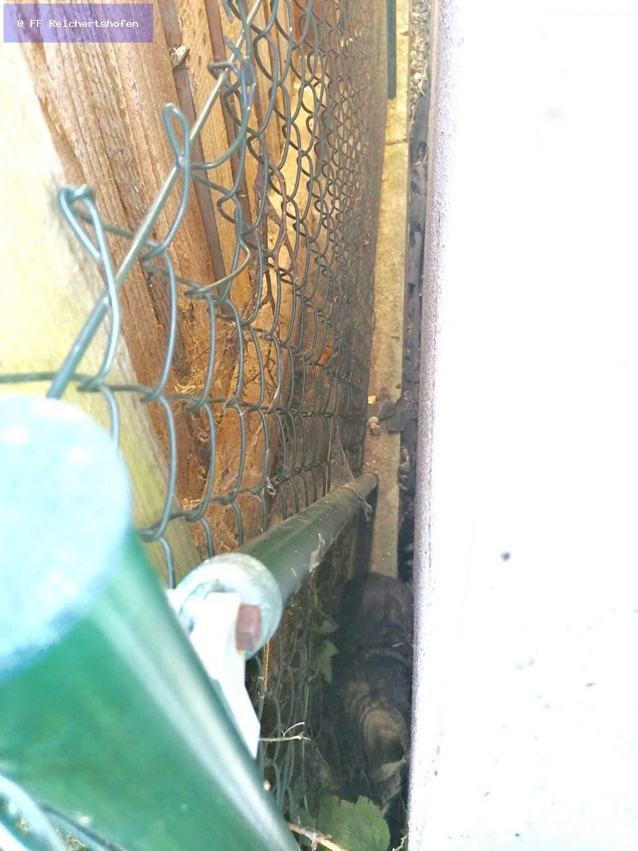 Eine eingeklemmte Katze, zwischen einer Garage und einem Holzschuppen die Spitz zulaufend nebeneinander gebaut wurden, war die heutige Herausforderung der wir uns gestellt sahen. Die Katze war wohlauf, konnte sich aber durch einen Maschendrahtzaun der am Ende gespannt war nicht mehr selbständig aus dieser Lage befreien.
