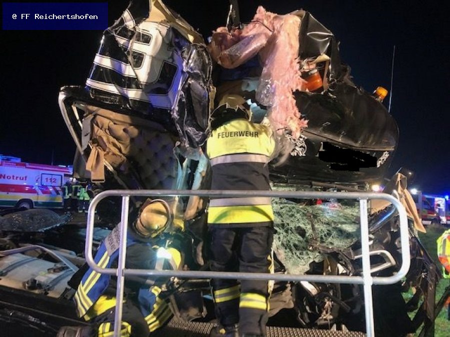 Nach Absprache mit dem Rettungsdienst und dem Notarzt wurde aber keine technische Rettung notwendig. Lediglich für die Polizei zur Amtshilfe wurde das Fahrerhaus noch mit Spreizer und Schere bearbeitet um persönliche Sachen der Verletzten zu bergen.
