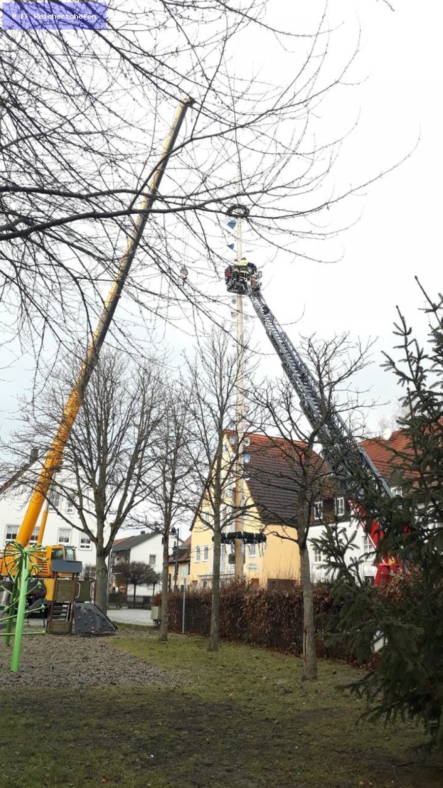 Unterstzützung beim Abbau des Maibaums