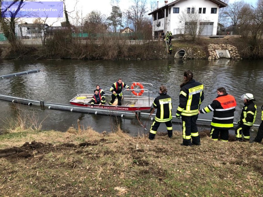 Wir wurden heute zur Unterstützung der Feuerwehr Baar alarmiert. Auf der Paar wurde dort ein Ölfilm festgestellt.