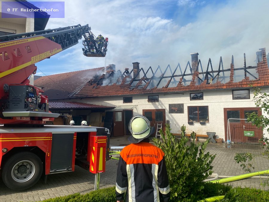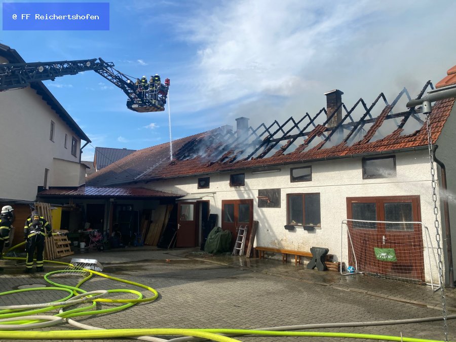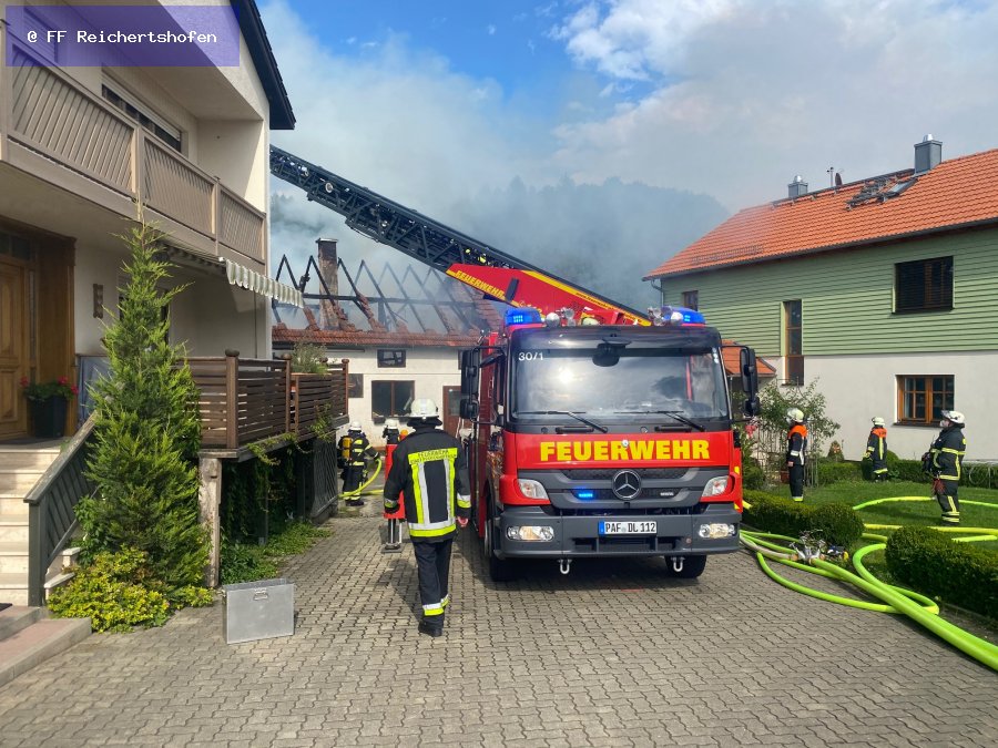 Bei der Alarmstufenerhöhung auf einen B5 wurden wir mit der Drehleiter nach Ehrenberg angefordert. Es brannte eine Schreinerei.