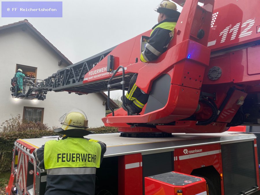 Zur Unterstützung des Rettungsdienstes wurden wir mit der Drehleiter nach Stöffel gerufen. Bedingt durch das enge Treppenhaus musste ein Patient durch das Fenster gerettet werden um in das Krankenhaus zu gelangen.