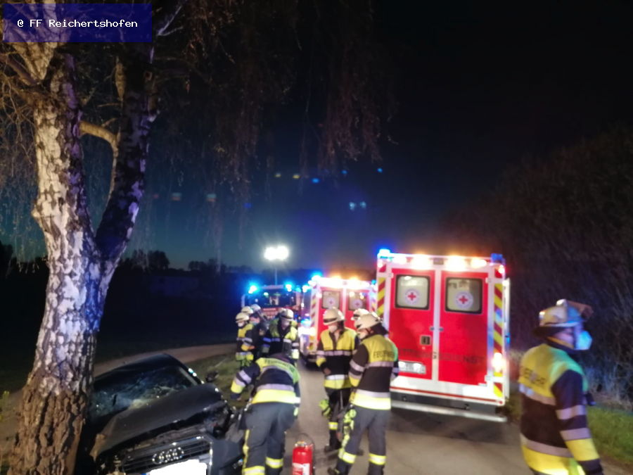 Ein PKW kam allein beteiligt von der Straße ab und prallte mit der rechten vorderen Seite gegen einen Baum. Alle drei Insassen wurden hierbei verletzt.