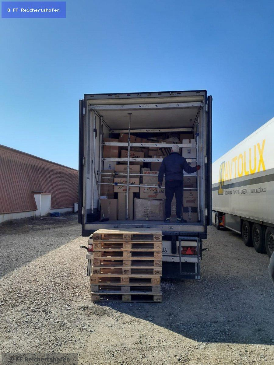 Die 101 Parletten die in der Paarhalle gelagert waren, wurden Mithilfe des Staplers der Feuerwehr und vielen Helfern in die beiden bereitgestellten Lastwagen geladen um dann anschließend in die Ukraine zu fahren.