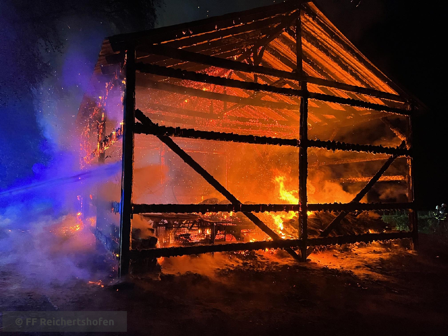 Brand eines landwirtschaftlichen Gebäudes wurden wir nach einem schweren Unwetter alarmiert.
