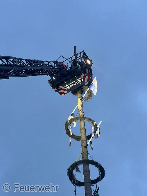 Spitze des Maibaums abgebrochen, droht zu fallen