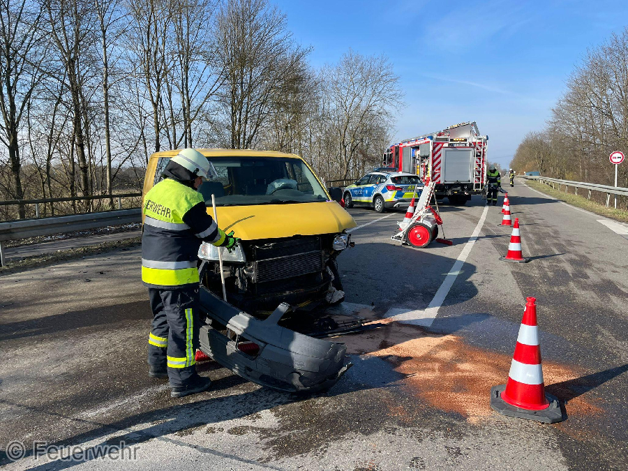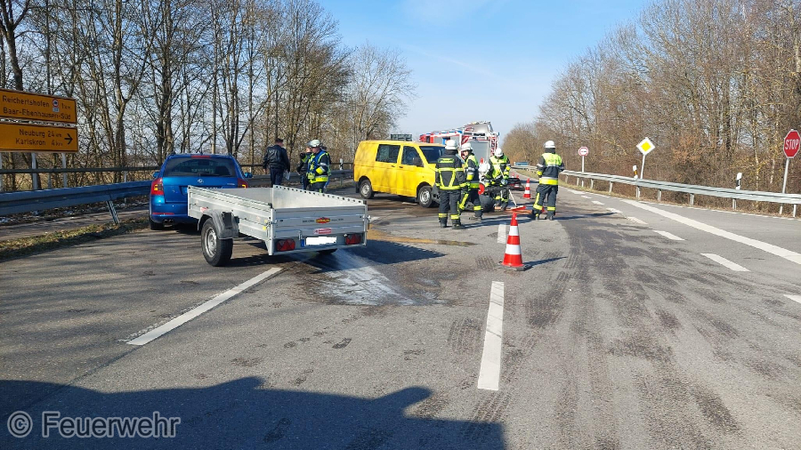 Verkehrsunfall auf der Brücke der B13 mit zwei verletzten Personen.