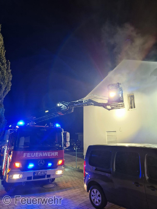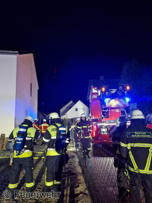 Wir unterstützten mit 1 Trupp unter Atemschutz zur Erkundung im Erdgeschoss und stellten mit der Drehleiter eine Anleiterbereitschaft her.