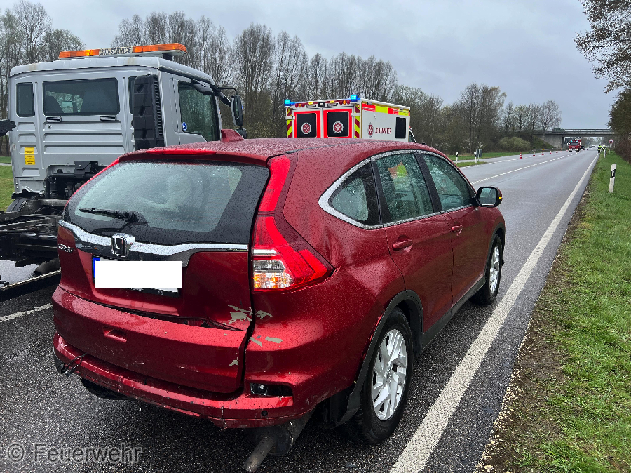 Bei dem Auffahrunfall wurden mehrere Personen leicht verletzt. Wir versorgten die Verletzten, sicherten die Unfallstelle ab und leiteten den Verkehr um.
