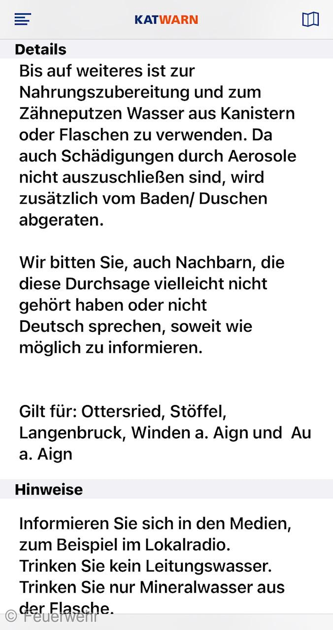 Warnung der Bevölkerung - Trinkwasser verschmutzt