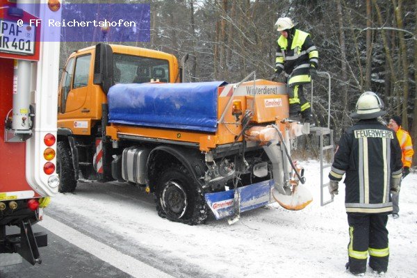 Ein Streufahrzeug kam von der Fahrbahn ab und blieb im anliegenden Grünstreifen stehen. Grund für diesen "Ausrutscher" des Streufahrezuges war die spiegelglatte Fahrbahn.