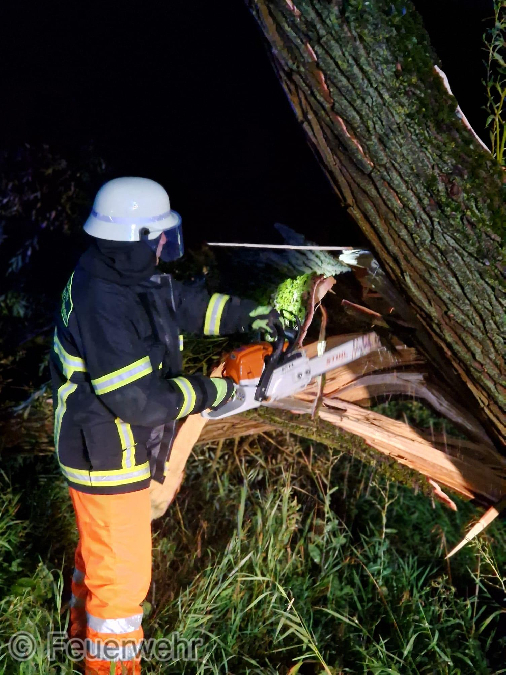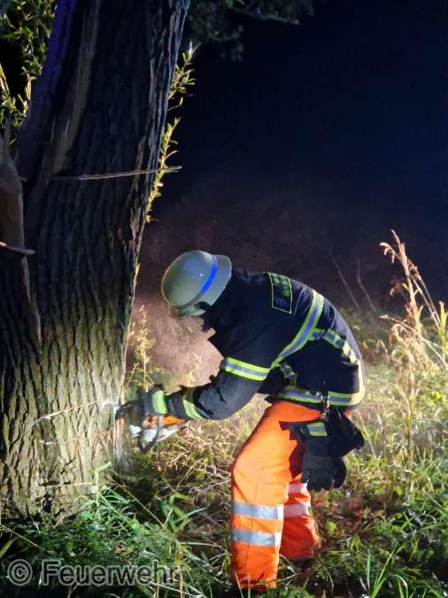Wir sicherten ab, schnitten die Fahrbahn frei und fällten den Rest des Baumes