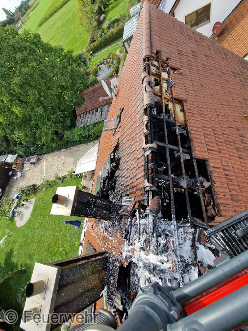 Dies zeigte schnell Wirkung, ein Übergreifen auf die zweite Haushälfte über die Dachkonstruktion konnte aber leider nicht komplett verhindert werden.