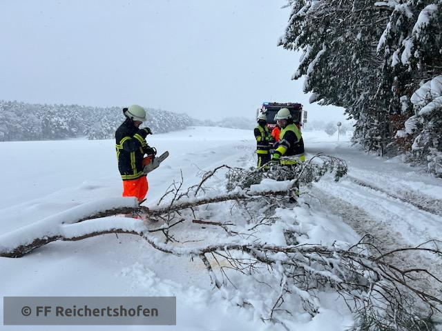 Da der Bauhof / Straßenbaulastträger mit den Schneemassen beschäftigt war, entfernten wir die Bäume auch auf kleineren Straßen der Gemeinde
