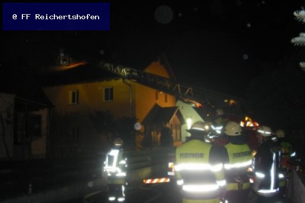 Die Feuerwehr Reichertshofen wurde zu einem Wohnhausbrand nach Oberstimm alarmiert. Dort waren bereits die Wehren aus Oberstimm, Manching, Unsernherrn sowie die Werkfeuerwehr Cassidian am Einsatz. Der ausgedehnte Wohnhausbrand wurde von mehreren Atemschutztrupps im Innenangriff sowie mit zwei Drehleitern (WF Cassidian, FF Reichertshofen) im Aussenangriff bekämpft. Um den Dachstuhl des verwinkelten Massivbaus weiter öffnen zu können, kam die nachalarmierte Hubrettungsbühne der Werkfeuerwehr Audi AG zum Einsatz.