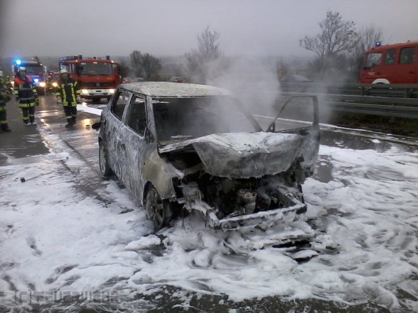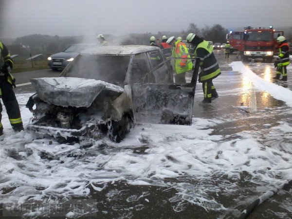 Verursacht durch einen Auffahrunfall auf der Bundesautobahn 9, in Fahrtrichtung München, geriet heute Morgen ein PKW in Brand. Der Brand wurde von der Feuerwehr Wolnzach gelöscht.