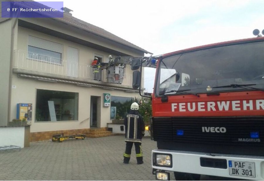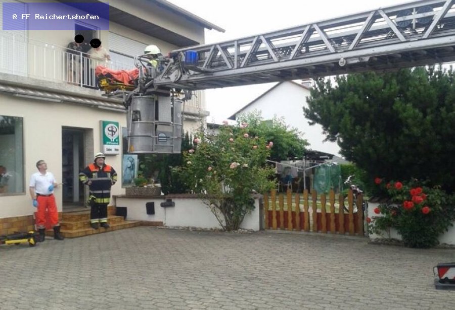 Auf Anforderung des Rettungsdienstes wurde heute Vormittag die Drehleiter der Feuerwehr Reichertshofen zu einer Patientenrettung alarmiert. Die Person wurde mittels Drehleiter aus dem ersten Obergeschoß eines Wohnhauses auf Erdgleiche gebracht und anschließend vom Rettungsdienst in ein Krankenhaus verbracht.