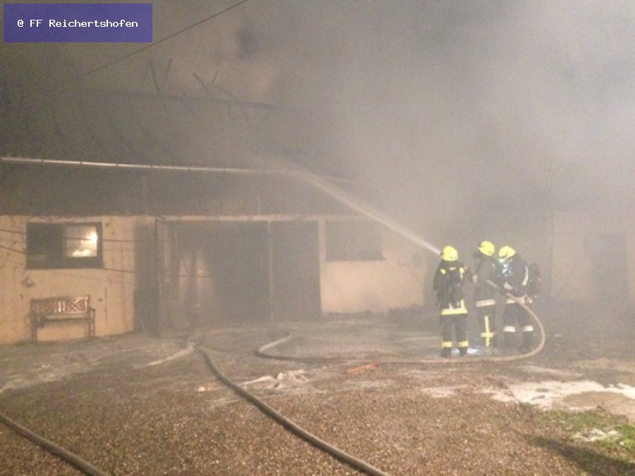 Schon während der Anfahrt konnte ein Vollbrand des Daches der gesamten Stallung erkannt werden. Dadurch wurden weitere Einheiten zur Einsatzstelle gerufen!