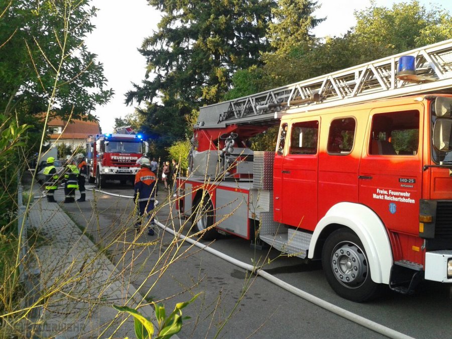 Mit dem Einsatzstichwort "Garagenbrand" wurden die Feuerwehren Ebenhausen und Reichertshofen in die Friedländer Straße nach Ebenhausen-Werk alarmiert. Beim Eintreffen der Einsatzkräfte stand ein Holzanbau an der Garage bereits in Vollbrand. Der Besitzer teilte mit, dass sich darin u.a. Gasflaschen befinden. Mit einem massiven Löschangriff konnte der Brand rasch eingedämmt und abgelöscht werden. Ein Übergreifen der Flammen auf das Wohnhaus konnte verhindert werden.