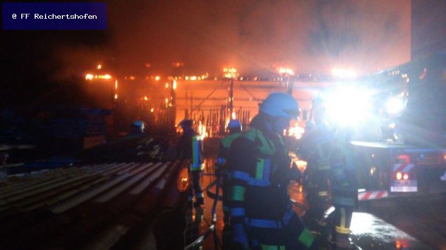 Bei der Alarmerhöhung wurde die Drehleiter der Feuerwehr Reichertshofen mitalarmiert. Diese wurde dann auch zur Brandbekämpfung und zum Schutz eines Nebengebäudes in Verbindung mit dem HLF eingesetzt. Die Feuerwehren aus Rohrbach, Fahlenbach, Wolnzach, Waal, Langenbruck, Winden am Aign, Puch, Geisenfeld und Eschelbach kämpften bis in die morgenstunden gegen das Feuer an.