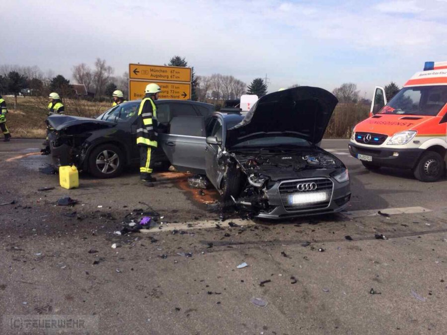 Auf der Bundesstraße 13, Abfahrt Reichertshofen, kam es heute Mittag zu einem Verkehrsunfall mit vier Verletzten. Nach erster Lageerkundung durch den Einsatzleiter der Feuerwehr Reichertshofen waren keine Personen eingeklemmt. Bis zum Eintreffen des Rettungsdienstes wurden die Verletzten, drei Personen und ein Kind, von der Feuerwehr medizinsch erstversorgt. Parallel wurde die Bundesstraße 13 für den Folgeverkehr gesperrt.