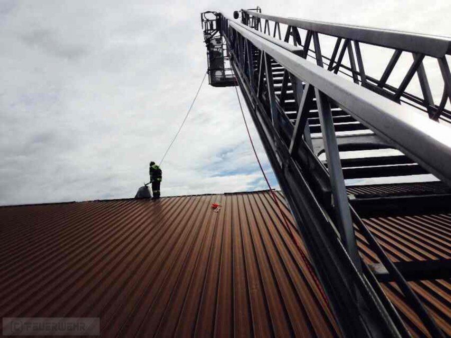 Durch das derzeit herrschende Sturmtief "Niklas" löste sich das Belchdach einer Industriehalle an mehreren Stellen. Die losen Teile wurden entfernt.