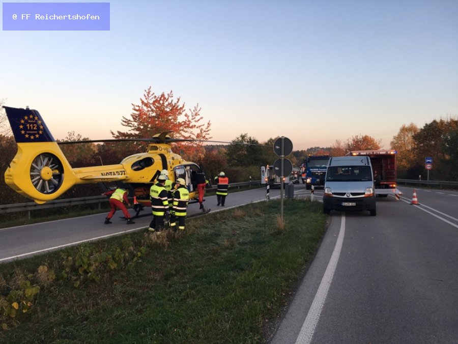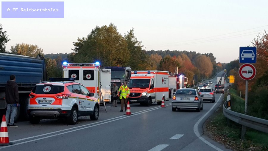 Bundesstraße B13, Kreuzungsbereich zur B300 | | Datum | 12.10.2015 | | Alarmierungszeit | 07:25 Uhr | | Einsatzende | 09:25 Uhr | | Einsatzdauer | 2 Std. 0 Min. | | Alarmierungsart | Funkmeldeempfänger, ILS | | eingesetzte Kräfte FF Reichertshofen