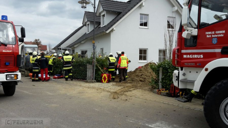 40 minütige Rettungsaktion eines Bauarbeiters in Baar: Bei Handschachtungsarbeiten wurde ein Bauarbeiter bis über die Hüfte mit Erdboden bedeckt. Die alarmierten Einsatzkräfte benötigten ca. 40 Minuten um den Bauarbeiter zu retten. Unter Zuhilfenahme von zwei am Unfallort stehenden Minibaggern sowie Schaufeln und Sicherungsmaterialien gelang es, die verunfallte Person zu retten. Mit mittelschweren Verletzungen wurde die Person in ein Krankenhaus geflogen.