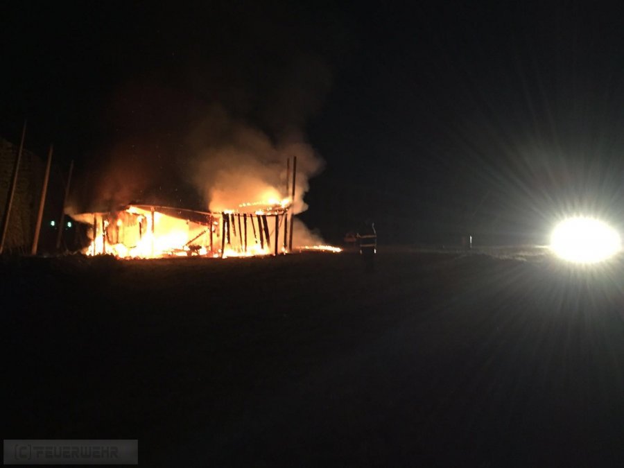 In Weichenried brannte letzte Nacht der hiesige Bauwagen. Der Vollbrand konnte von den Feuerwehren Hohenwart, Pörnbach und Weichenried rasch gelöscht werden. An dem Bau, mit einer Fläche von ca. 10m x 15m, entstand ein Totalschaden.