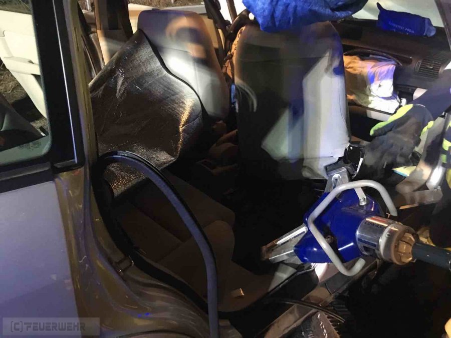 Verkehrsunfall auf der BAB 9, Fahrtrichtung München. Eine Person musste mittels hydraulischem Rettungsgerät aus einem Fahrzeug befreit werden.