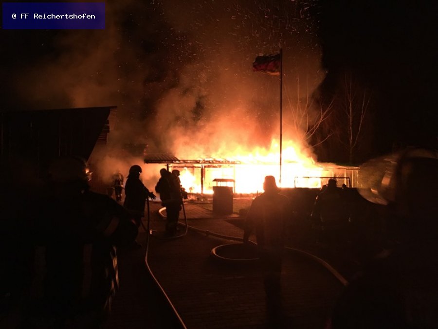 Zu einem Brand wurden wir heute nach Karlskron alarmiert. Vor Ort brannten mehrere Schuppen in denen Vögel, Hühner und Wachteln untergebracht waren. Beim Eintreffen der Feuerwehren brannte ein Teil lichterloh und wurde durch die Feuerwehr Karlskron, die schon vor Ort war bereits bekämpft.
