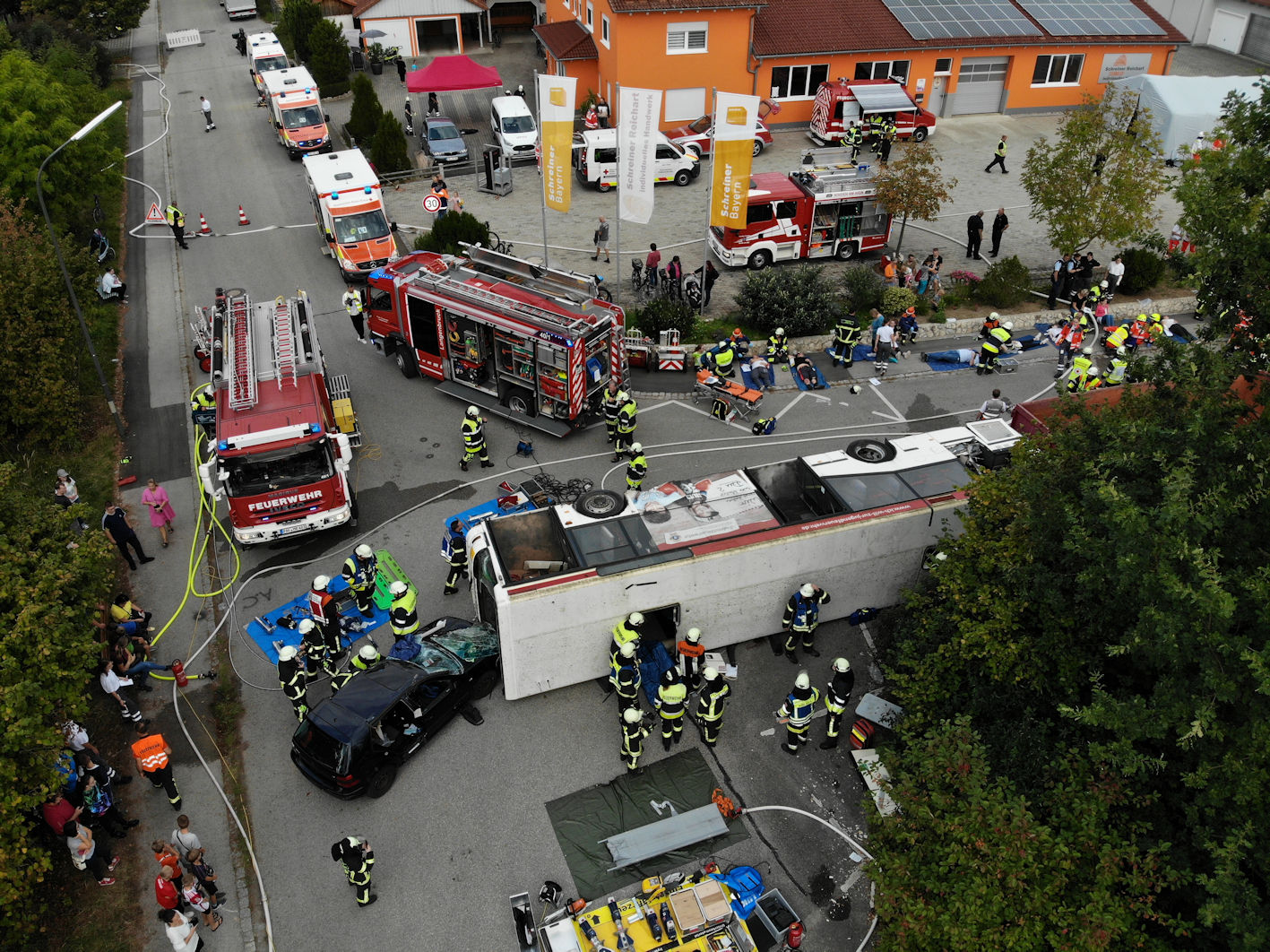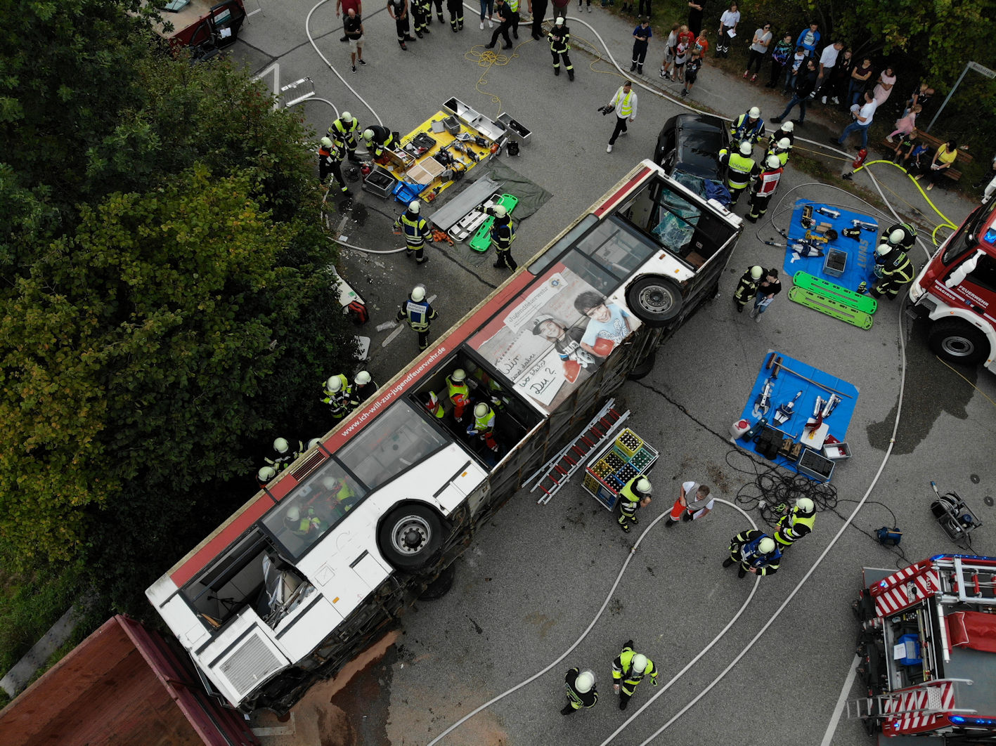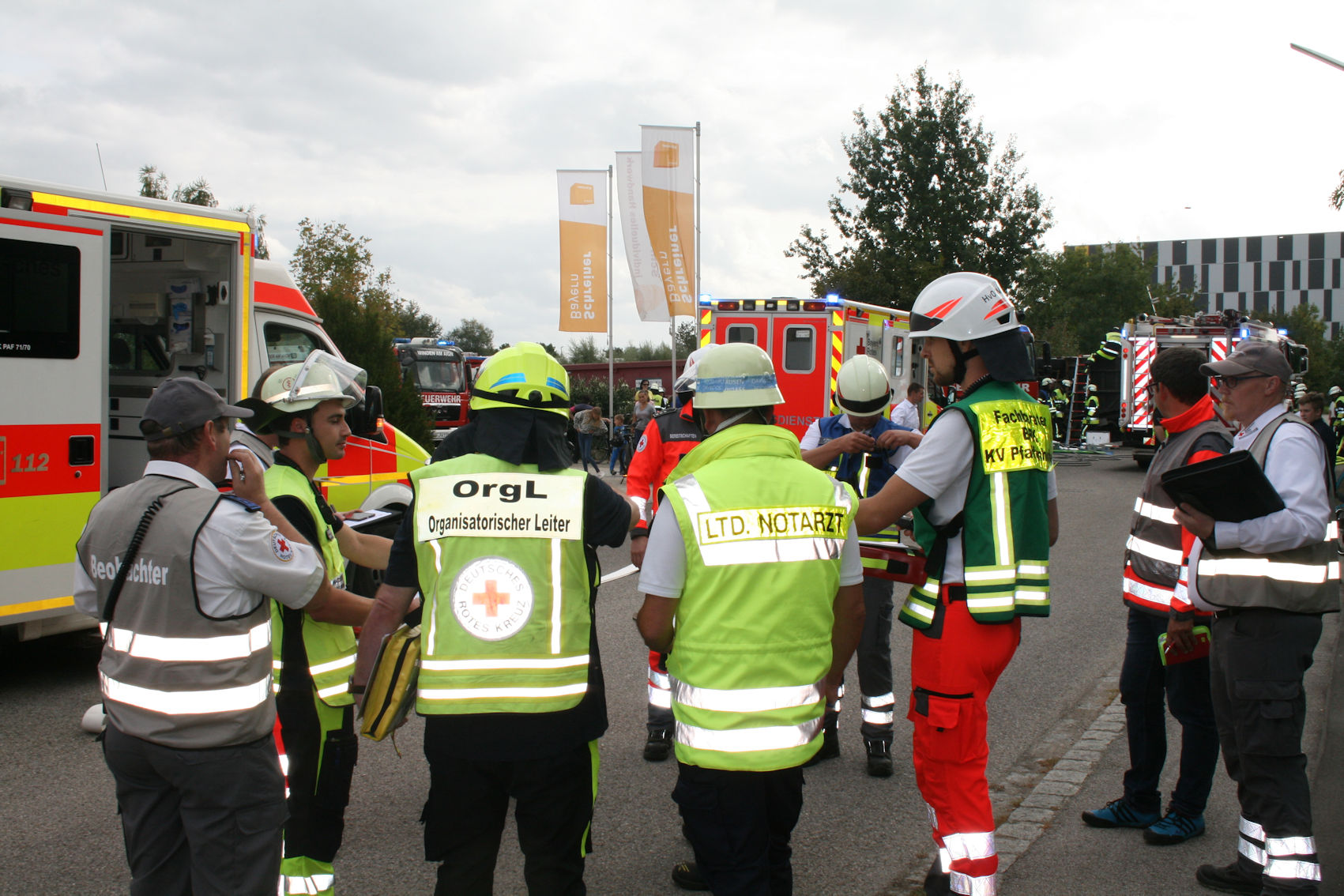 Dieses sah vor, dass ein Linienbus, welcher zum Zeitpunkt von 26 Personen besetzt war, mit einem PKW kollidiert und anschließend zur Seite gekippt war. Im PKW saßen zudem drei Insassen. Die Herausforderung bei einem solchen Massenanfall von Verletzten besteht darin, „Patientensichtung, -betreuung und -rettung zeitgleich zu bewerkstelligen“, so der Katastrophenschutzbeauftragte des BRK, Markus Lirsch. Eine immense physische und psychische Belastung für die Rettungskräfte.