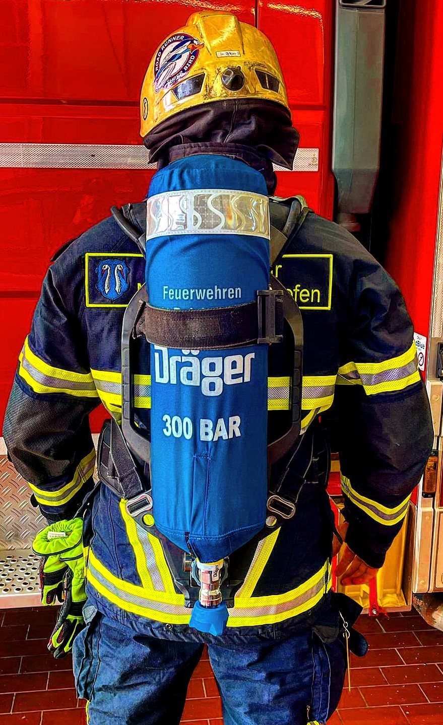 Eine weiterer Sprung in Richtung Leistungsfähigkeit konnte mit der Umstellung unserer Atemschutzgeräte, auf 300 Bar CFK-Flaschen gemacht werden. Diese sind deutlich leichter als die bisherigen 200 Bar Stahlflaschen. Dadurch wird dem Atemschutzgeräteträger im Einsatz einiges an körperlicher Belastung und Ausdauer eingespart und somit auch der Gesundheit und Leistungsfähigkeit vorgebeugt.