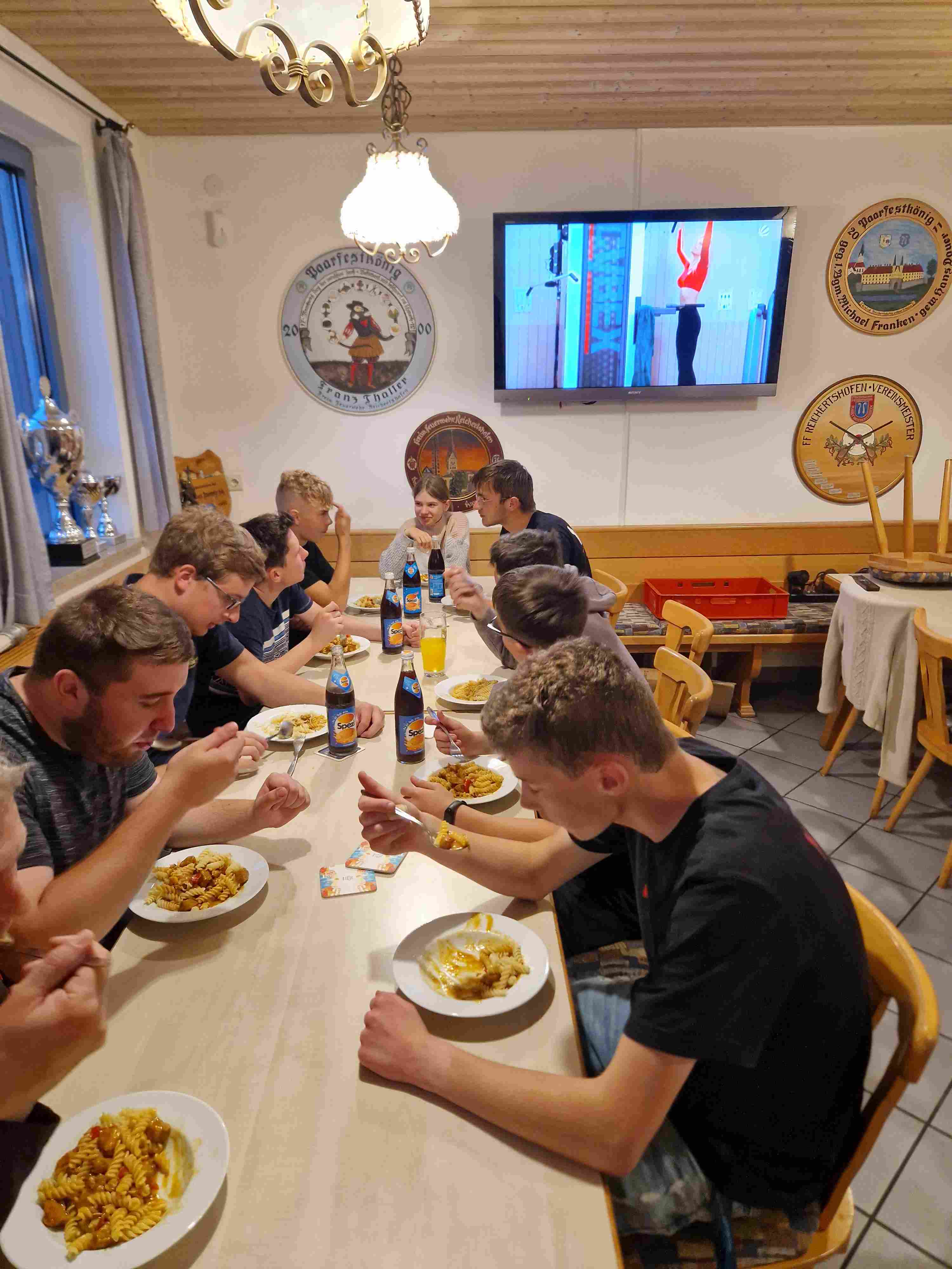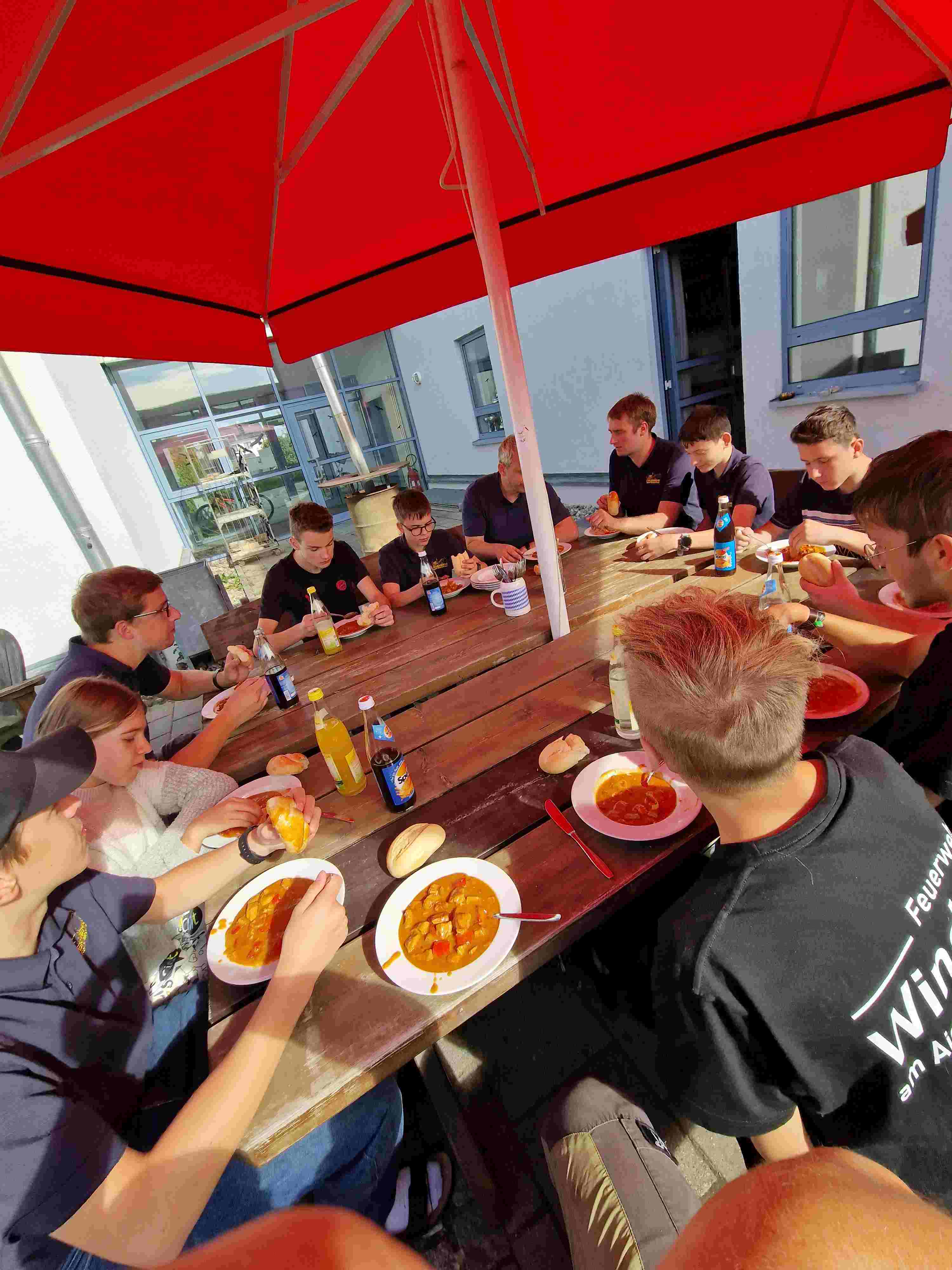Zurück vom Alarm wurde die Übung beendet, das Fahrzeug wieder aufgerüstet und die Einsatzbereitschaft wiederhergestellt, ehe alle am gemeinsamen Mittagessen teilnahmen. Denn ohne Mampf, kein Kampf!