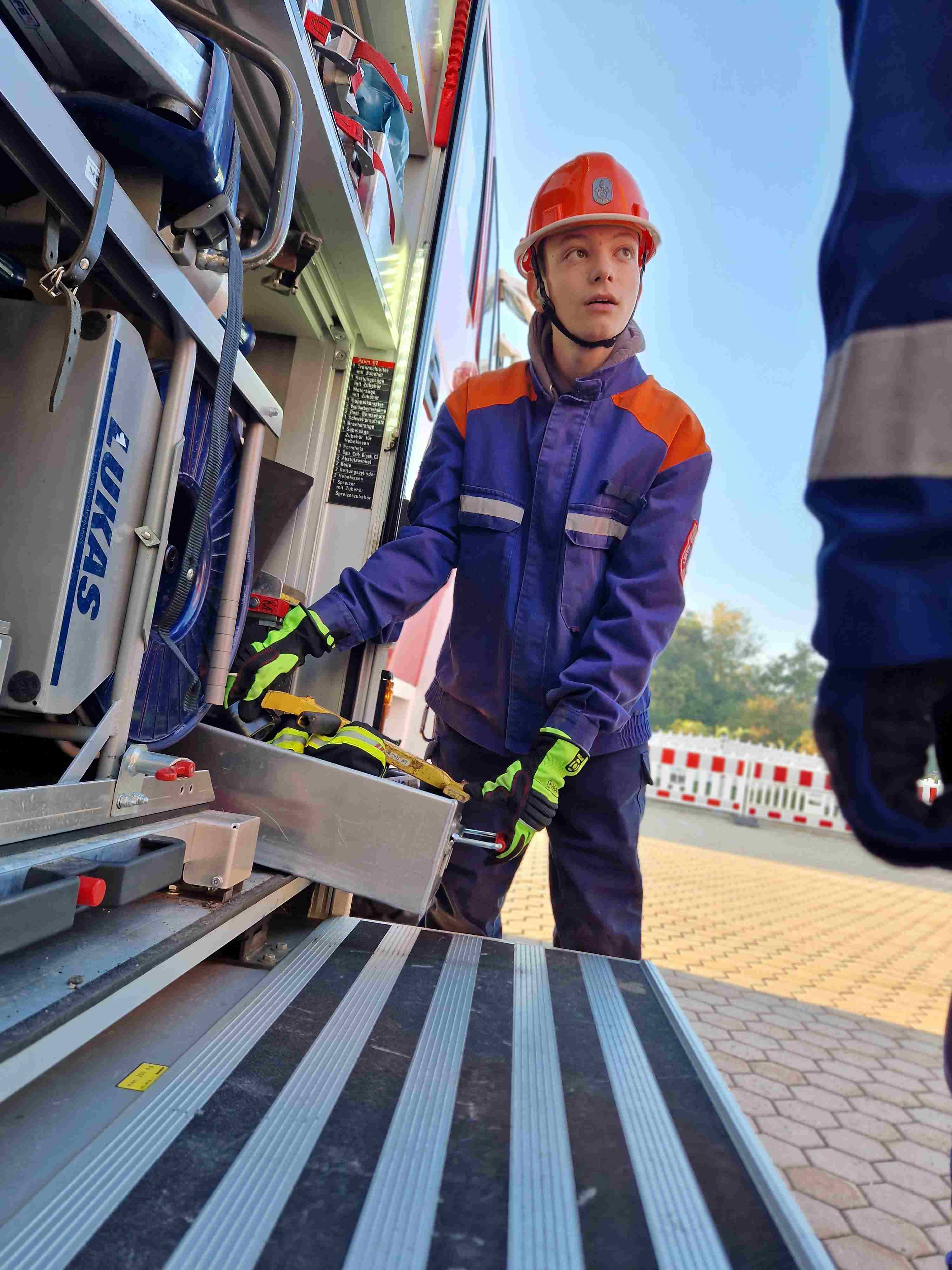 Los ging es um 08:00 zum Antreten mit der persönlichen Schutzausrüstung in der Fahrzeughalle, wo alle begrüßt wurden und jedem der geplante Tagesablauf berichtet wurde. Im Anschluss galt es Fahrzeug und Gerät auf Funktion zu überprüfen.